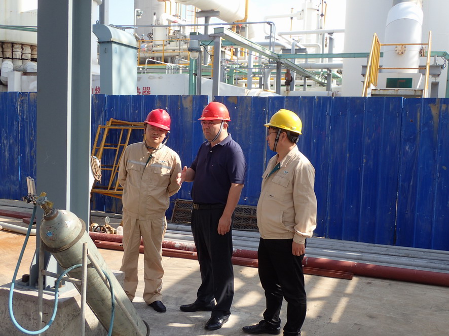 楊龍一行實地查看了氯堿公司氫氣純化技改項目、天然氣制氫壓縮機廠房現場和氨綸公司精制罐區、危廢庫等重點區域,就相關設備運行、安全防范情況進行詳細了解。楊龍強調,新中國成立70周年即將到來,要把安全工作當成一項重要的政治任務,認真做好各個重點部位、關鍵裝置等環節的排查和治理,提高專業化水平,做到立行立改。要提高安全生產意識,認真落實好安全檢查、節假日應急管理和值班制度,強化對設備的檢查維護和隱患整改,確保節日期間安全生產平穩運行。