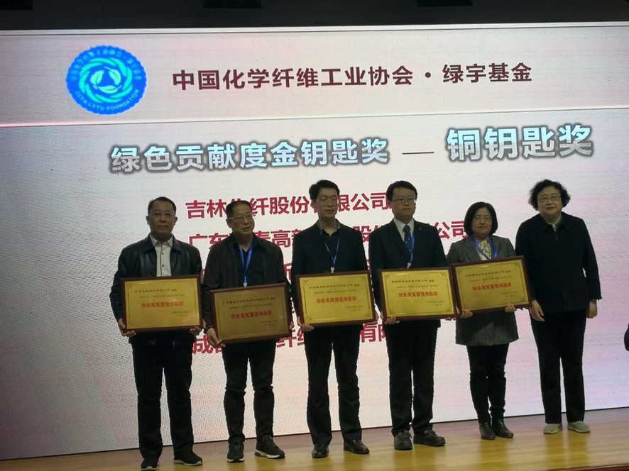 31113日,集團公司總經理胡建明、副總經理王士華等一行先后參加了中國化纖協會六屆五次理事會和2019中國國際紡織紗線展。江蘇奧神新材料股份有限公司榮獲2019年度“中國化學纖維工業協會?綠宇基金”綠色貢獻度銅鑰匙獎。