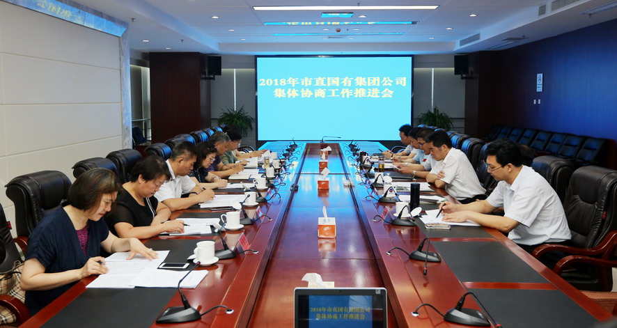 719日上午,2018年市直國有集團公司集體協商工作推進會在集團公司總部召開,市總工會副主席秦云、工業投資集團、城建控股集團等市直國有集團公司工會主席及市總工會相關部門負責人參加了會議。
