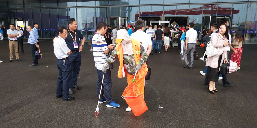 9月14日,連續忙碌了兩個禮拜的職工們還沒來得及休息,便又投入到“連博會”的準備工作中去。由于本屆“連博會”共有來自27個國家和地區的420家企業參展,展覽總面積達3.7萬平方米,各家展商在布置展臺時,各類生活垃圾、裝修垃圾等一度將該公司布設的100多個垃圾桶都塞滿了,在安排好人工清理的同時,該公司還安排垃圾清運車對積存垃圾進行清理清運,組織灑水車對會場及周邊道路進行沖洗,一直到9月18日晚上9點左右才完成準備工作。19日“連博會”開幕當天,負責現場保潔工作的職工們早上6點多就趕到了會場,冒雨在會場周邊開始忙碌,一臺大型清掃車和一臺灑水車也在會場旁隨時待命。到了中午,當展商們在室內小憩的時候,室外的職工們為了不耽誤事,站在風口匆匆地扒拉兩口混雜著雨水的盒飯,就又投入到緊張的清理工作中去。僅19號開幕當天,累計清理各類垃圾7噸左右,為“連博會”的正常召開提供了一個干凈、整潔的會場環境。