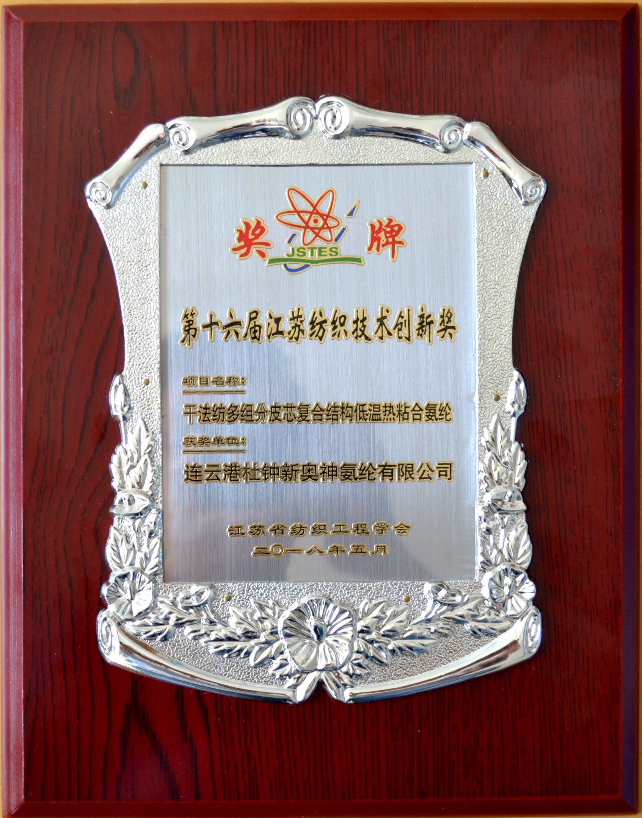 氨綸公司新產品獲第十六屆江蘇省紡織技術創新獎