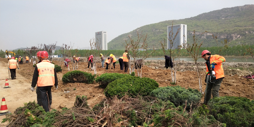 綠化工程施工緊鑼密鼓。公司承接的昌圩湖路移苗工程、242省道綠化恢復工程、江寧工業園242高速入口道路綠化補植工程、中科院環境提升改造工程等六項綠化工程,總價680多萬元,“五一”期間進入施工關鍵期,裕升、裕欣、裕祥養護公司和益豐園林公司的技術骨干、綠化工人放棄假日休息,持續投入到緊張有序的施工之中,瑞泰服務公司、盛達市政公司水車、挖掘機、運輸車等機械車輛緊密配合綠化工程施工,起苗、運苗、上土、栽苗、搭架、澆水等環節緊扣,每一個作業現場都是一幅人頭攢動、車來人往的忙碌勞動畫面。