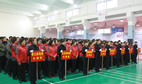 上午8時,開幕式準時開始。青口供電所代表隊、臺北供電所代表隊、臺南供電所代表隊、徐圩供電所代表隊、灌西供電所代表隊、農場市場代表隊、淮鹽大酒店代表隊和公司機關代表隊等依次入場。他們振奮高昂,邁著鏗鏘的步伐整齊劃一地走向主席臺,彰顯了電人團結協作、勇于拼搏、開拓創新、積極進取的精神。