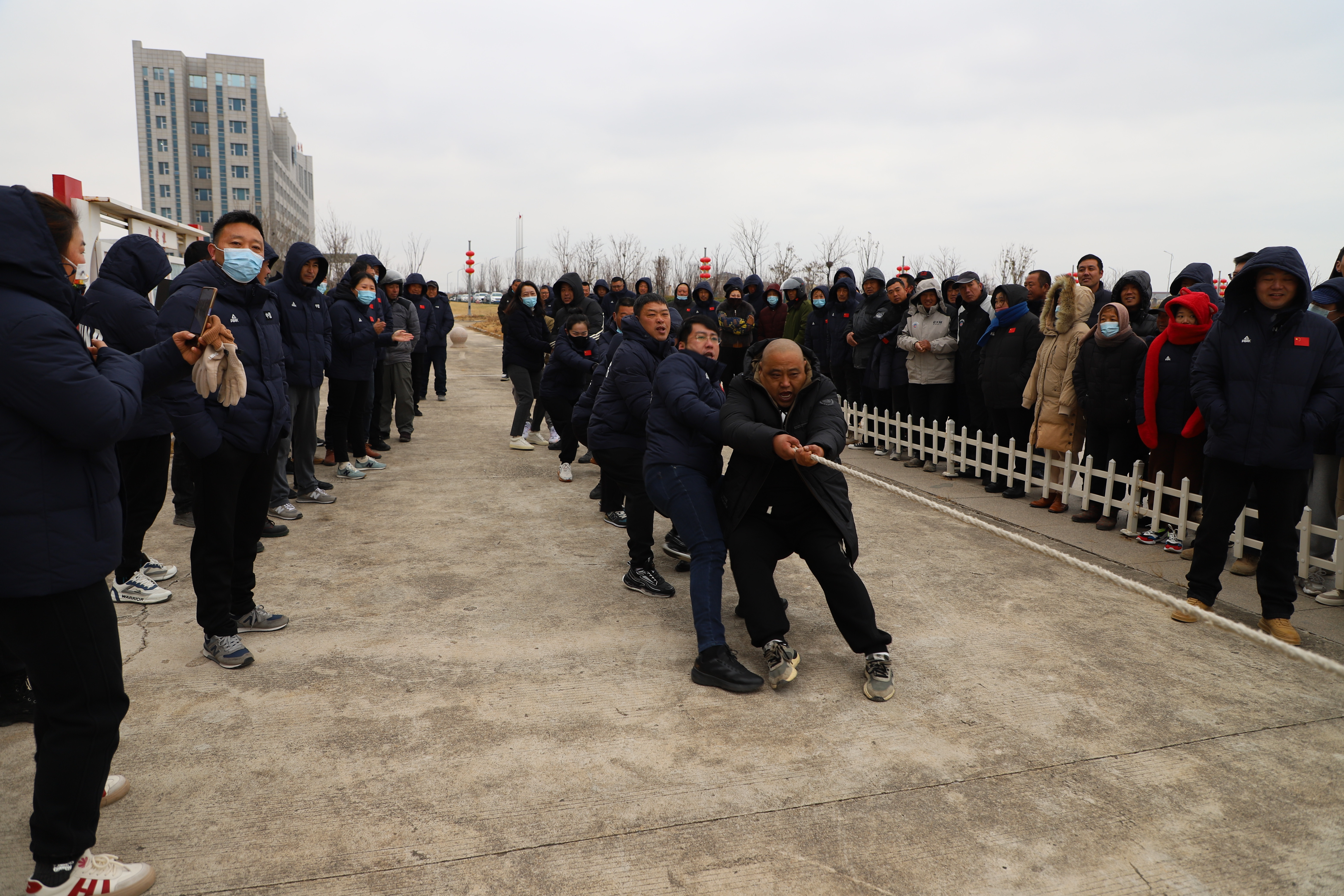 開幕式結束以后,緊張激烈的拔河比賽立即展開。新河、埓南、宵洋等12支參賽隊伍按照抽簽順序逐一上臺亮相。賽場上,鼓舞聲、吶喊聲此起彼伏,參賽隊員們團結協作、不到最后一刻永不言棄的精神贏得了在場觀眾的陣陣掌聲。經過近一個小時的激烈角逐,最終埓南制鹽分公司一隊力壓群雄,奪取拔河比賽第一名,新河制鹽分公司一隊、新河制鹽分公司二隊及宵洋物流公司代表隊分獲二至四名。