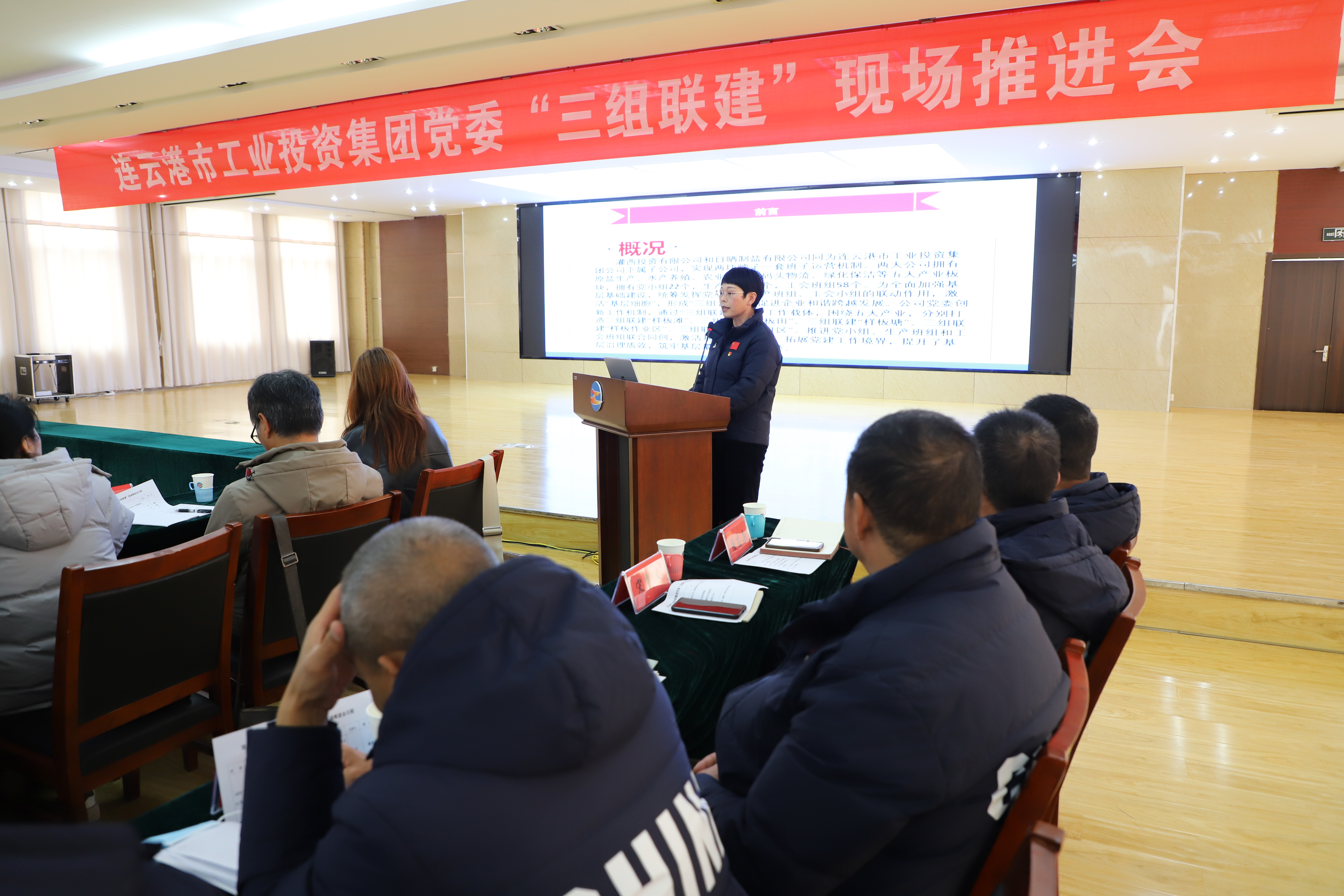 與會人員分別在新河八班、宵洋碼頭作業區現場觀摩了“三組聯建”特色工作。在新河制鹽分公司八班參觀了“三組聯建”綜合活動室、三組聯建方面的具體工作舉措、三組聯建樣板灘在冬季生產的場景;在宵洋碼頭參觀了三組聯建樣板作業區的活動陣地及作業現場情況?,F場觀摩結束后,在灌西機關五樓會議室觀看了集團公司相關單位“學習身邊榜樣”先進典型視頻;氨綸、供電、格斯達、灌西4家單位就“三組聯建”特色工作進行交流匯報。集團黨建人資部部長夏正斌部署近期主題教育及黨建重點工作。
