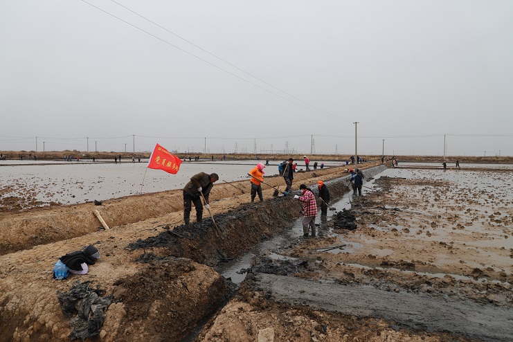 11月29日上午,雖然天氣寒冷,但是在海鹽基地新改造的制鹵灘上,卻到處是一派火熱的勞動景象,參加“大會戰”的工人多達100余人,只見他們有的潑水,有的鏟泥,有的撈溝,有的做埝,大家分工協作。據了解,為了提高海水制鹵能力,確保海鹽產量,今年公司專門對海鹽基地部分廢棄灘地進行了改造,以進一步增加制鹵面積。近期,隨著改造工程接近尾聲,公司又組織精干力量對新改造灘地繼續進行修整,以確保新建的制鹵灘地能夠盡快投入使用,為明年海鹽生產工作的正常有序開展奠定扎實的基礎。