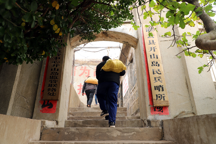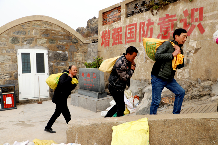 起來,不愿做奴隸的人們……”在開山島頂小廣場上,大家整齊列隊、唱響國歌、注目敬禮。鮮艷的五星紅旗迎風飄揚,這個曾經只屬于他們兩個人的升旗儀式,如今迎來了更多的追隨。守島民兵熱情地領著我們參觀面積僅0.013平方公里的開山島,講述著這些年王繼才夫婦守島的故事,從一盞煤油燈、一個煤炭爐、一臺收音機到自己掏錢購買的200多面國旗。沿著這一條條王繼才夫婦走過無數遍的巡島路,大家在看、在聽、在思索。今天我們在這里,就是要學習他們愛崗敬業、艱苦奮斗、勇于擔當的崇高精神?;顒又?,我們一線班組長還在島上進行了義務勞動,為守島民兵運土種菜,有的兩人抬,有的上肩抗、也有的背的,他們不怕臟、不怕苦、不怕累,大家熱情高漲,以勞動為榮,充分展現了我們灌西人的良好精神面貌。
