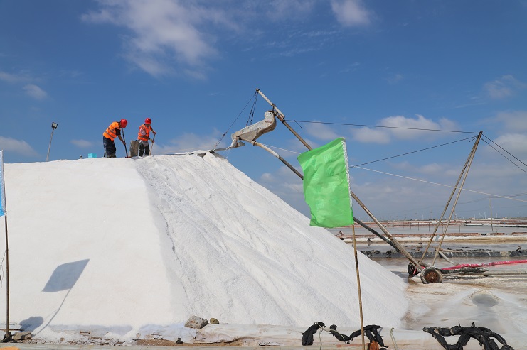 新河制鹽分公司國慶長假扒鹽忙