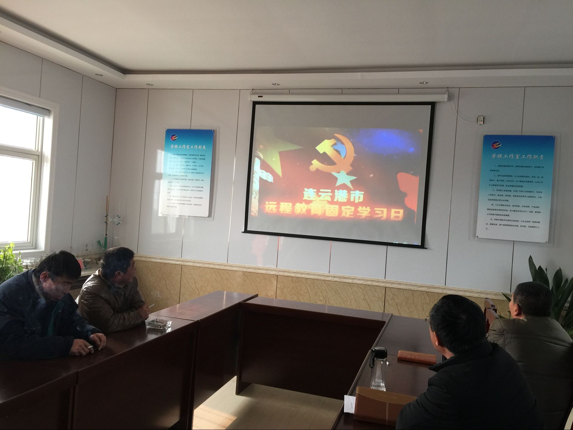 1月18日,新河制鹽分公司黨員、入黨積極分子在勞模創新工作室觀看愛國主義電影《空天獵》。