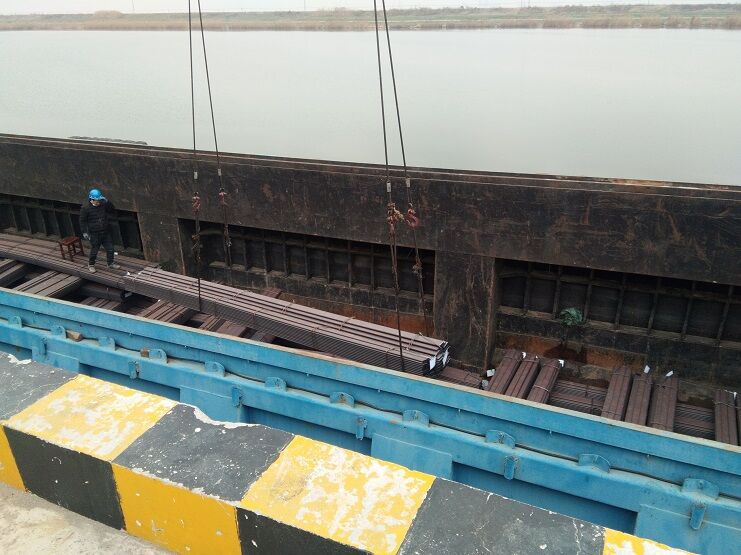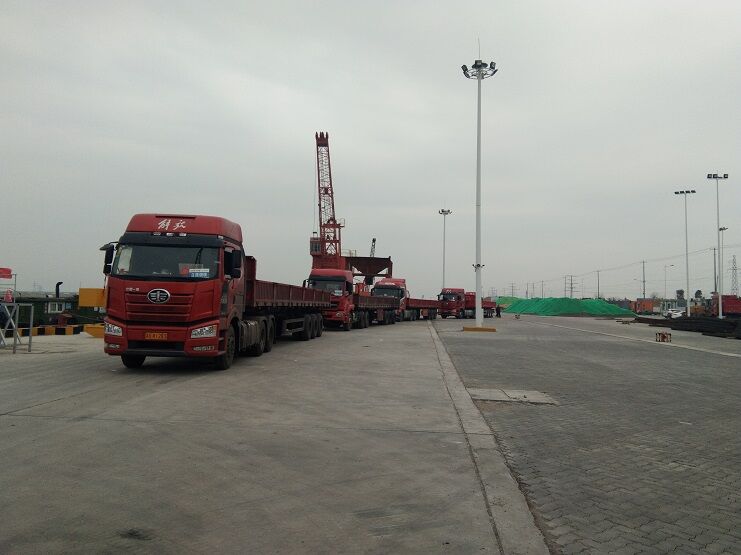 隨著江蘇省境內復產復工的開始,省內道路交通逐漸恢復,宵洋物流公司抓住戰機,積極發展客戶。裝載著彈簧扁鋼特種鋼材的車輛絡繹不絕地駛入碼頭,直接裝船。這將大幅度降低碼頭倉儲壓力,提高碼頭的運轉能力。這也是碼頭首次鋼材進行船運,打破以往車輛運送貨物的局限性,大大增加碼頭的吞吐量。