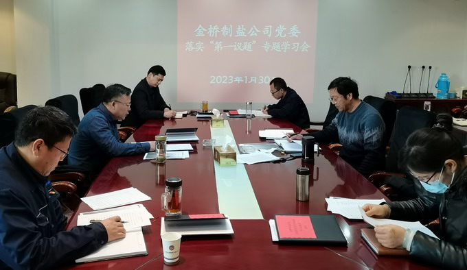 1月30日,我公司落實“第一議題”學習制度,學習習近平總書記論:“健全全面從嚴治黨體系”;總書記論:“實現好維護好發展好最廣大人民根本利益”;總書記論:“全面掌握黨的二十大精神”。會議由公司黨委書記、總經理田磊主持,公司黨委班子參加學習。(金宣)