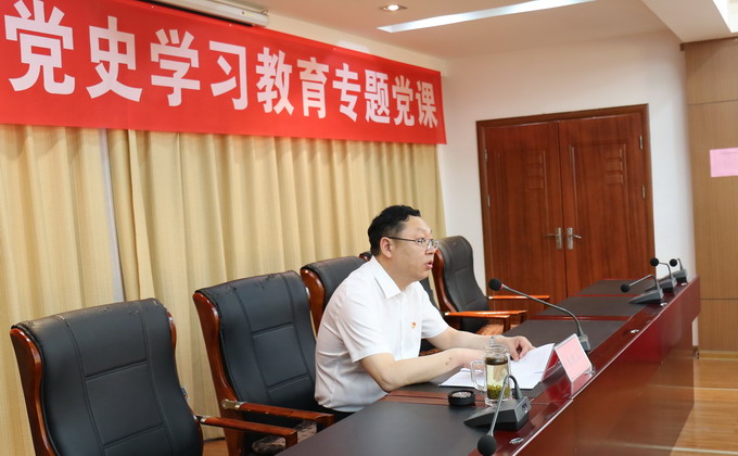 7月1日下午,我公司在三樓會議室開展黨史學習教育專題黨課學習會。公司黨委書記、董事長、總經理朱桂玉以“學習黨的歷史 賡續精神血脈”為題專題授課。公司領導班子成員,各支部負責人,機關部室全體黨員參加學習會。