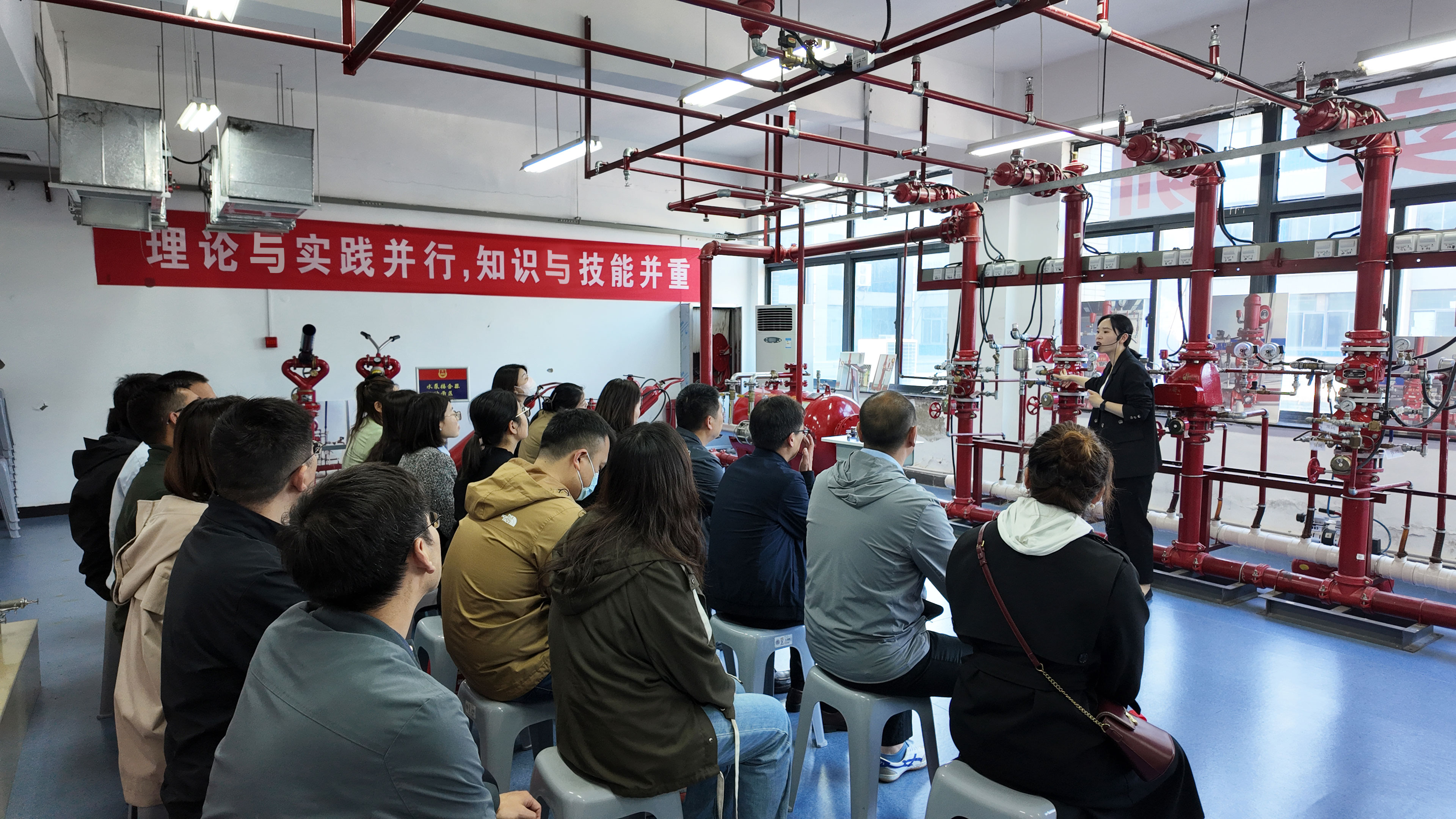 培訓中,具有注冊消防工程師資質的培訓老師運用理論授課、實地講解、多媒體互動等多種教學方式,使參訓職工快速了解并掌握建筑常見消防設施及消防器材的動作原理和操作技能?!笆谌艘贼~,不如授人以漁?!痹谂嘤栠^程中,老師利用學校獨特的現場教學場景,針對九小場所“三合一”現象、違規違章動火作業、常見電氣火災隱患等實際問題進行了深入剖析和講解,并重點強調了日常消防防范管理工作的程序和重點,令大家受益匪淺。
