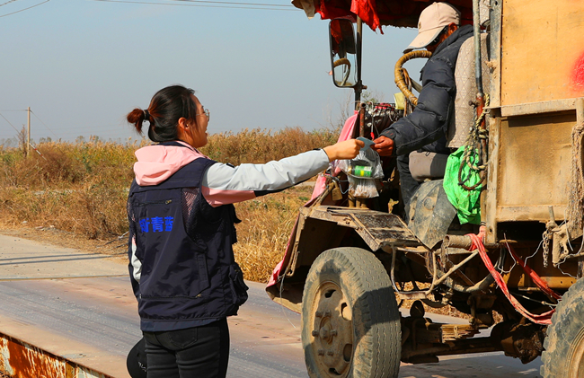 在秋收實踐中,“藍馬甲”青年干部行走步數平均每天約1.5萬步,累計管理稻谷轉運車輛1500多輛,檢測銷售稻谷水分、出米率100多份樣品,每天對種植、養殖以及“三邊”地帶近2萬畝區域開展安全、秸稈禁燒巡邏檢查。