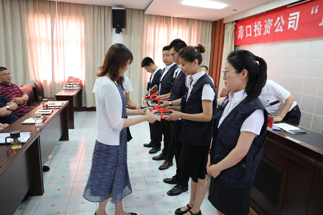 集團人力資源部部長劉曉兵同志啟動“藍馬甲”頒授儀式,為學員頒授藍馬甲。 公司人力資源部部長許中業同志宣讀特訓營實施方案,特訓營班長仲偉彬帶領所有成員進行“藍馬甲”宣誓,學員代表黃阿鳳作表態發言。