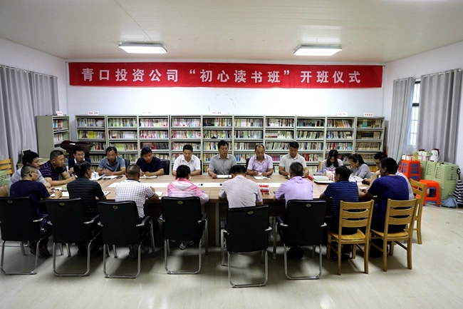 8月1日下午,青口投資公司“初心讀書班”開班儀式在圖書閱覽室如期啟動。分管領導、副總經理周緒祥、各單位黨政負責人、優秀青年員工代表參加。