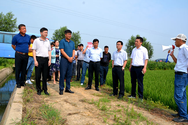 王董事長一行先后到大新農場農業生產現場、糧食倉儲項目、生態種養中心、勞模示范養殖池塘、小附河亮化工程現場、鹽田玉展銷中心、廉政文化廣場等地進行了考察調研。