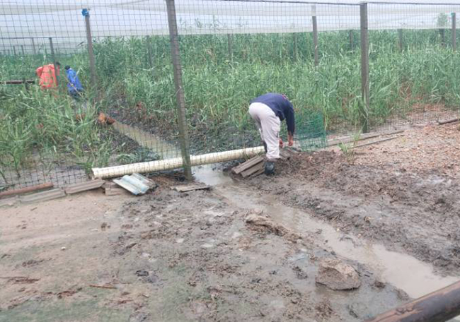 近期雨水較多,種養中心利用雨水天氣,配合施工單位避開高溫進行排水道清理。將原排水河道清淤治理,并對排水河道采取鐵絲網加固加牢的措施,確保雨水期間雞舍排水系統暢通。(田鐘超)