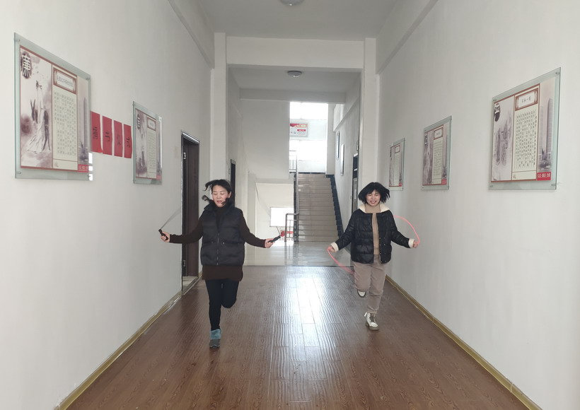 跳繩比賽兩人一組,用最短的時間跳到終點者勝利。只見他們用一次次律動的跳躍動作,挑戰著自己的力量和耐力,盡情“繩”采飛揚,跳出精彩。